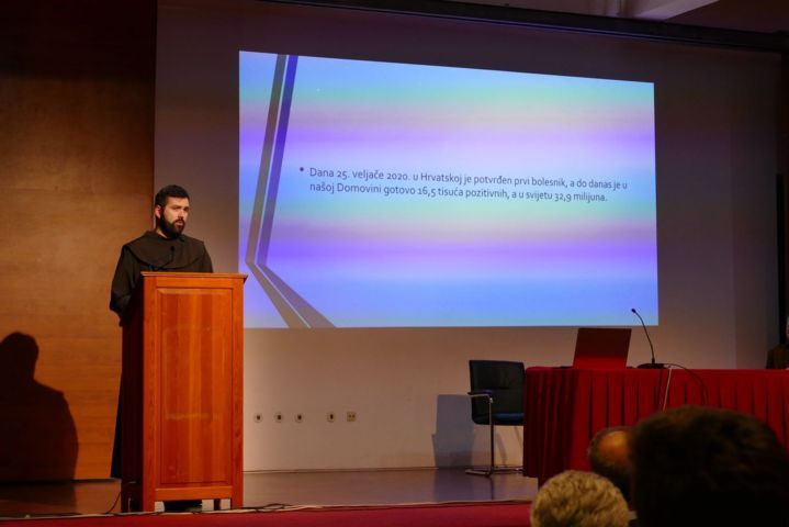Lectio brevis o temi: „Zajednička odgovornost za ljudsku obitelj u vremenu pandemije COVID-19“ održao je mr. sc. Šimun Markulin, asistent na Katedri Moralnoga bogoslovlja. Budući da je nedavno i sam prebolio Covid 19 govorio je iskustveno o pandemiji, odgovornosti i solidarnosti zaključivši da Crkva nema nema „nekakav katalog rješenja već nudi svoje stoljetno iskustvo u različitim zemljama i narodima. Pozvani smo postati ljudi nade. Danas su nam potrebne univerzalne vrijednosti, upravo kako bismo udahnuli novu nadu u svijet pogođen pandemijom. U toj perspektivi, kršćanstvo može dati dragocjeni doprinos sveopćoj obnovi. Ta nova vizija mora biti utemeljena na jedinstvu ljudske obitelji, kao i na moralnim vrednotama koje su zajedničke svim ljudskim bićima. Pozvani smo na nov odnos sa svijetom, kako bismo što bolje izliječili rane u našim srcima, našim obiteljima, našem gradu i narodu, kao i u cijelom stvorenju. Za nas može započeti novo vrijeme: vrijeme ozdravljenja i vraćanja dostojanstva svakoj osobi, vrijeme susreta, pravde i ljubavi.“ Prodekan za nastavu doc. dr. Ante Akrap iznio je potom sve važne obavijesti o predavanjima i tijeku rada u novoj akademskoj godini. Redovita nastava prema rasporedu počinje u utorak 29. rujna.