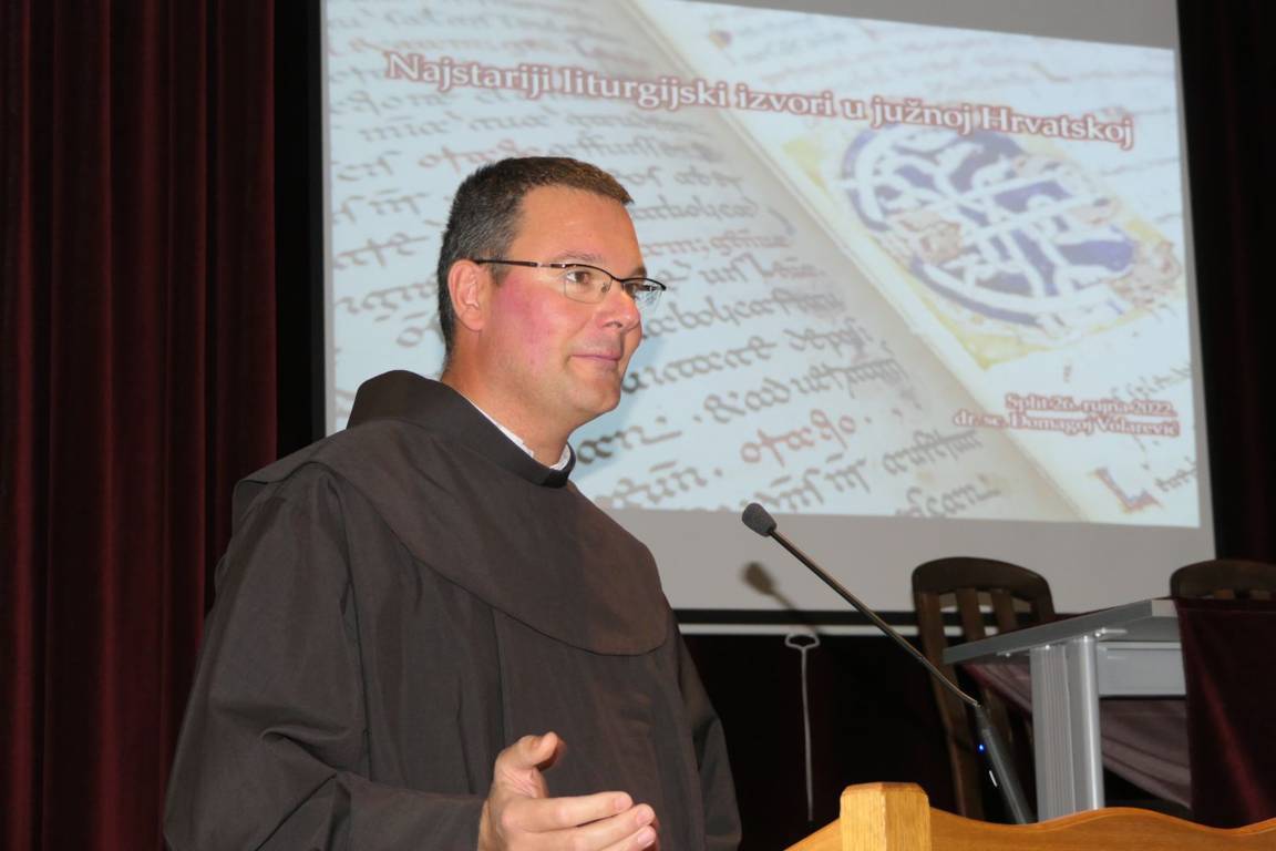 „Lectio brevis“ o temi „Najstariji liturgijski izvori u južnoj Hrvatskoj“ održao je dr. sc. Domagoj Volarević”. Svoje je predavanje započeo različitim liturgijskim izvorima: crkvene građevine, liturgijske knjige (obredi/rubrike), liturgijsko ruho, liturgijsko posuđe, liturgijski namještaj i slike. Istaknuo je razliku izvora u/iz Hrvatske, koji se čuvaju u Hrvatskoj i onih koji su s područja današnje Hrvatske (npr. Vekenegin evanđelistar). Iako postoje izvori na različitim jezicima (ponajviše staroslavenski i latinski), predavač se usredotočio na latinske izvore, jer su glagoljski pisani liturgijski izvori, uglavnom kasnijega datuma. Kada govori o južnoj Hrvatskoj u našem kontekstu misli na prostor Splitske metropolije i Zadarske nadbiskupije. Upozorio je da valja izbjegavati eventualne zabune najstariji ↔ najznačajniji izvor. U pogledu starosti izvora, uzeo je u obzir sve izvore od najstarijih pa do 13. stoljeća, što je otprilike kraj tzv. visokoga srednjega vijeka.