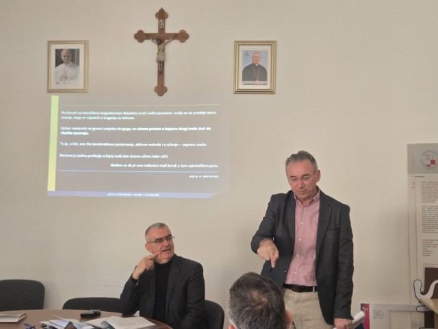 Na Katoličkom bogoslovnom fakultetu Sveučilišta u Splitu dana 9. travnja 2026. godine održana je stručna radionica za nastavnike pod nazivom „Učinkovite nastavne metode u visokom obrazovanju“. Radionicu je vodio prof. dr. sc. Mile Dželalija s Prirodoslovno-matematičkog fakulteta Sveučilišta u Splitu.