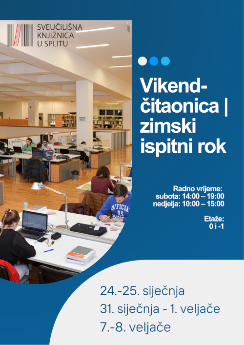 Sveučilišna knjižnica otvara tzv. vikend-čitaonicu (na etažama 0 i -1), odnosno produljeni rad vikendom: